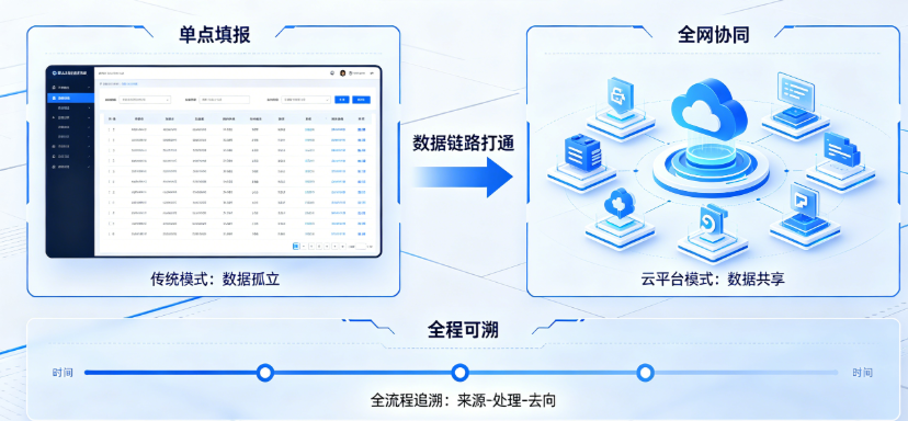 通过系统或国家平台,可快速追溯任意批次危废的完整生命周期信息:产生单位、时间、种类、重量、包装、危害特性;贮存位置、时长、环境条件;运输单位、车辆、轨迹、时间;处置单位、工艺、结果、去向等。所有信息完整、连续、不可篡改,形成严密责任链条。